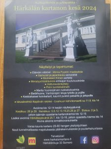 Ensi lauantaina olen Härkälän kartanossa Somerolla paikanpäällä kertomassa pienestä “Elämäni eläimet”- kesänäyttelystäni. Myös itse kartano on todella näkemisen arvoinen jännittävä paikka. Kartanon esittely alkaa puolenpäivän jälkeen ja mun osuus heti perään klo 13. Tervetuloa!