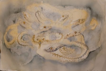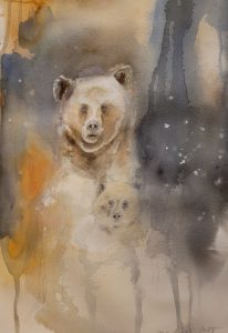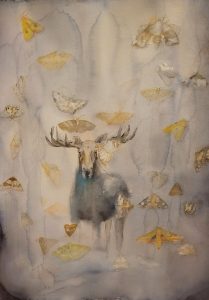 Maaliskuun alussa päättyi Porin luontotalo Arkissa esillä ollut näyttely Hirvistä hiisiin. Osallistuin näyttelyyn muutamilla maalauksilla myyttisistä eläimistä. Myin tauluista kaksi näyttelyn aikana, ja loput maalaukset palautuivat tänään Helsinkiin. Nekin löytyvät nyt TILA gallerian takahuoneesta.