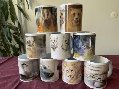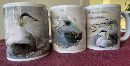 Galleriasta löytyy myös mun akvarellimaalausten pohjalta tehtyjä mukeja.