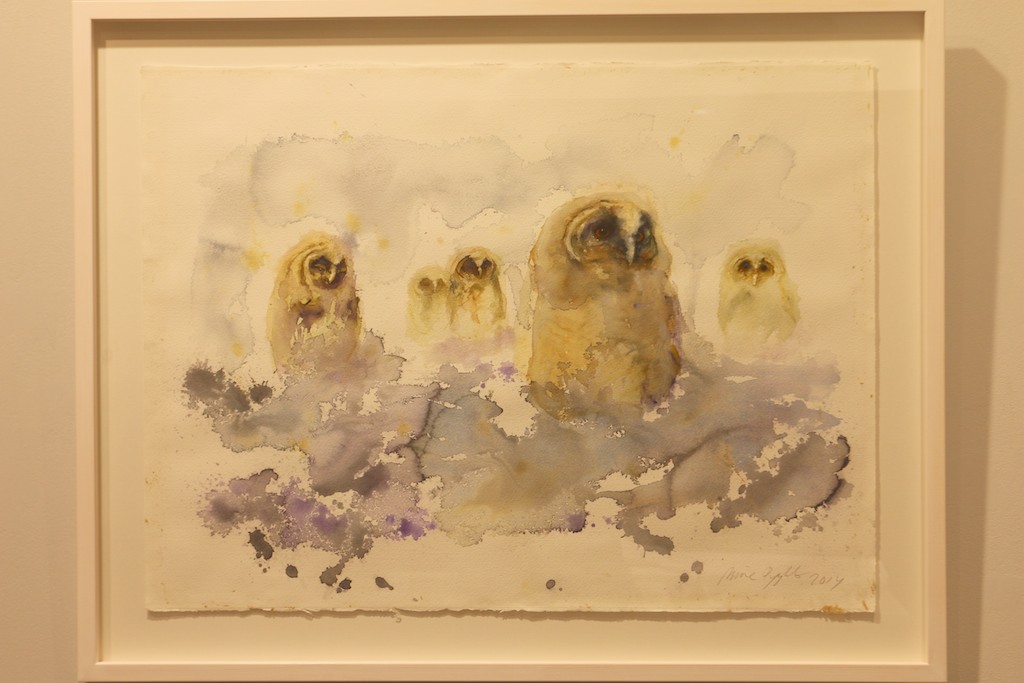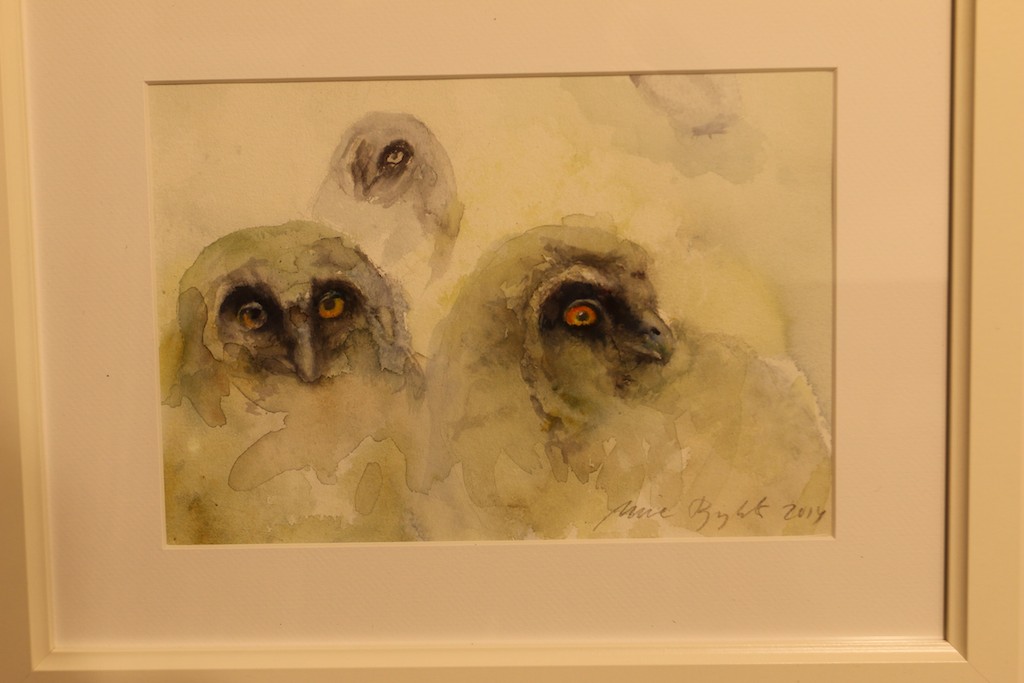 Näyttelyaika humahti lopulta vauhdilla. Kiitokset kaikille kävijöille. Myyntimenekki hämmästytti täysin, myin peräti 25 työtä! On jännä ajatella minkälaisilla seinillä ja millaisissa kodeissa  nämä taulut parhaillaan roikkuvat. Ketä pöllöt aamuisin ja iltaisin tuijottelevat. On mulla kyllä aika hyvä käsitys asiasta monen kohdalla, niin moni taulunostaja oli tuttu. Vietin galleriassa useita päiviä näyttelyä valvoen. Oli kiinnostavaa keskustella pöllöistä näyttelyvieraiden kanssa. Kuulin hienoja tarinoita kohtamisista pöllöjen kanssa, ja puhuimme paljon muutakin luonnosta. Aluksi heti avajaisten jälkeen oli vähän vaikeaakin istua galleristin tuolilla ja kuunnella kommentointia. Vähitellen sitä tottuu paremmin erilaisiin kommentteihin. Itse asiassa se oli ainutlaatuinen mahdollisuus kuulla miten eri lailla ihmiset voivat saman taulun nähdä. Joku näki paljon minua selvemmin sen mitä olin yrittänyt tavoitella. Eräs galleriavieras sanoi hienosti yhdestä vaakasuorasta maalauksesta, että siinä on mukana pöllöjen hiljaisuus. Kuulin kyllä kritiikkiäkin, pöllöjen vimmaa ja voimaa jäi puuttumaan jonkun mielestä.