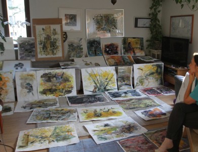 Koko päivä on vierähtänyt pöllömietteissä. Aika monet töistä ovat keskeneräisiä. Välillä kestää ennenkuin osaan jatkaa niitä. En jostain syystä yleensä onnistu sellaisissa maalauksissa joita yritän rakentaa mielessäni etukäteen hyvin valmiiksi. Niistä tuntuu tulevan jäykkiä, jotenkin kirjallisia. Usein lähden liikkeelle jostain alkuajatuksesta, mutta työ voi viedä sitten toiseen suuntaan. Parhaimmillaan homma on eräänlaista vuoropuhelua maalauksen kanssa.