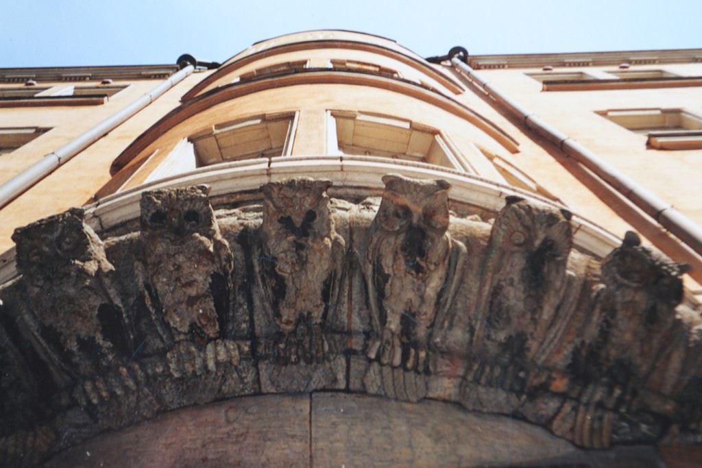 Olen saanut pitkästä aikaa työhuoneen käyttööni. On huippuhauskaa retkeillä Helsingin Punavuoressa ihan kuin turistina, ja katsella kaikenlaisia yksityiskohtia ja kauniita rakennuksia. En ole aikoihin pyörinyt täällä päin kaupunkia ja tuntuu tosiaan kuin olisin ulkomailla kun lähden kämpästä syömään tai kauppaan tai ostamaan jotain tarvikkeita. Monet talot ovat hämmästyttävän hienon näköisiä. Erityisesti pienet kiviset veistokset niiden seinissä. Niissä on usein itse asiassa eläinaiheita. Tässä alla myös pari hienoa pöllöaiheista, jotka eivät kylläkään ole Punavuoresta vaan Katajanokalta.