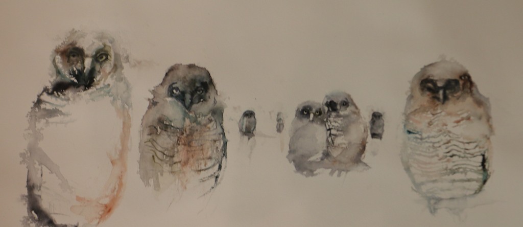 Pöllönäyttely on vireillä! Yritän ryhdistäytyä ja päivittää työhuoneajatuksiani ennen näyttelyä  ja keskeneräisten töiden etenemistä. Olen itse lueskellut innolla tuttujen taiteilijoiden blogeja, ja osallistunut mielessäni onnistumisiin ja sekaviin lamaannuksen hetkiin. Toivon että saan tähän blogiin kirjattua jotain samaa.