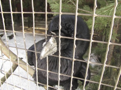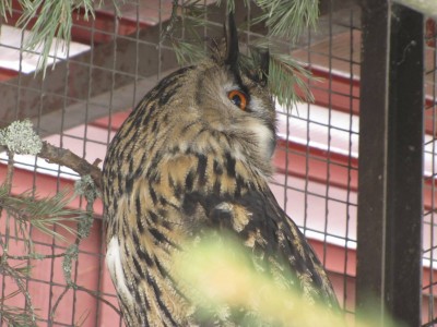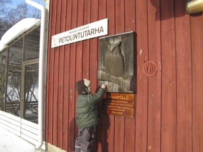 Paluumatkalla Helsinkiin pyörähdimme Heinolan lintutarhassa. Tarha oli kiinni, mutta katselimme hetken hoidossa olevia pöllöjä ja Julli-korppia. Kallen kanssa kuulimme, kun Julli vastasi eräälle rouvalle matalalla äänellä “Terve”.