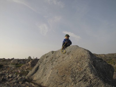 Teimme neljävuotiaan kanssa taas retken eteläkärkeen. Poika löysi kivikkorannalta erilaisia luita, ja yritti koota niistä uudelleen syötyä lintua. Eräänlainen saaristolaislapsen palapeli! Menomatkalla tieltä löytyi matarakiitäjän toukka, jota kannoimme lippalakissa retkiseurana. Samalla juttelimme siitä, miten erilainen maailma on pienille ja isoille. Pieniä eläimiä ei satu kun ne putoavat, kun taas suuret ovat siinä mielessä hyvinkin hauraita. Joimme hunajateet vakiopenkillämme suuren kiven suojassa. Paluumatkalla poika istui taas olkapäilläni, ja huuteli ohikulkijoille keskustelun avauksena: ”mun on matarakiitäjän toukka vaan täällä lippalakissa!” Paluumatkalla kyselin onko pojalla kaupasta ostotoiveita, oli: intergalaktinen limatykki! Juha ihmetteli kaupassa moista tilausta ja tuli yhden kaverin kanssa siihen tulokseen, että maksamakkara saattaisi olla lähinnä toivetta.