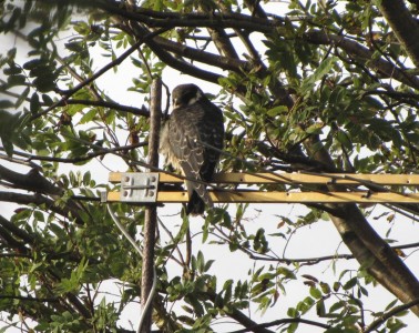 Nuolihaukka vietti päivää antennilla eikä välittänyt meistä kiikaroijista mitään. Saimme katsella sitä rauhassa. Joku putken kanssa paikalle tullut kommentoikin outoa tilannetta: Harvoin sitä saa tarkastella nuolihaukan sierainreikiä tähän tapaan.