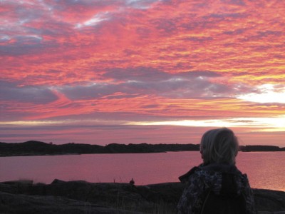 Huomaan juoksevani hotellinniemellä edestakaisin aamuin illoin. Aamulla kuvaan idästä nousevaa aurinkoa, ja iltaisin länteen laskevaa. Täällä Utössä olen nähnyt useita mieleen painuneita nousuja ja laskuja. Erityisesti nyt syksyllä päivät ovat sen verran lyhentyneet, että molemmat näkee hyvin.