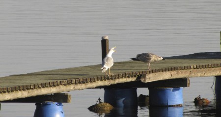 Nyt ruskan merkit alkavat jo näkyä, vaikka muuten syksyn muutoksia on vaikea havaita. Haarapääskytkin lentelevät vielä sataman venevajoissa vaikka mielestäni niiden olisi jo aika suunnitella etelänmatkaa. Tänään pysähdyin oikein kunnolla satamaan seuraamaan sitä ”mammanpoika” harmaalokkia, josta Juha on maininnut. Poikanen kerjää emolta ruokaa, vaikka on jo emoaan suurempi, ja haloo, huomenna on jo lokakuu! Nyt olisi aika ryhdistäytyä, mutta emo raahaa edelleen ruokaa poikaselleen.