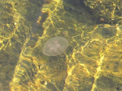 Lokakuun ensimmäinen päivä oli hämmästyttävän lämmin, tuulensuojassa pihallamme oli t-paita keli. Päivä oli myös hiirihaukkojen ja kurkien muuttopäivä, ja niitä lipui saaren ohi ennätystahtia. Lämmin päivä houkutteli myös perhosia ja sudenkorentoja liikkeelle. Illalla hepokatit sirittivät innolla. Lapset virittivät majaa majakan viereiseen bunkkeriin. Leikki näytti hauskalta, ja neljävuotias hinkusi mukaan. Hengailin siis lähietäisyydellä toista tuntia, ja kuvasin meduusoja majakkalahdella. Iltahämärissä grillasimme pihalla. Läntinen taivaanranta oli hetken aivan kellanoranssi. Grillin lämmetessä hämärästä kuului muutaman kerran ohi lentävän kaulushaikaran huuto. Myöhemmin huuhkaja huuteli jokusen kerran Ormskärillä. Katselimme linnunrataa, joka näkyi selvästi.