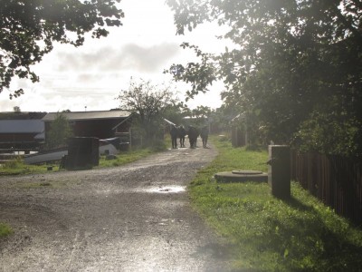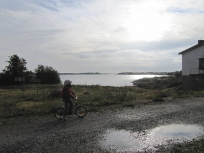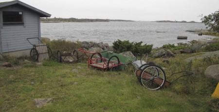 Illalla pääsimme hakemaan tomaatteja salaattiin kasvihuoneesta. Lasten toimittaessa asiaa tein pikaisen happihyppelyn laiturille muutaman väsyneen oloisen västäräkin kanssa. Eivor on lähtenyt aamulla klo 5.30 ja saapuu seuraavan kerran huomenna. Satamassa sitä odottelee kymmenkunta maitokärryä ja muutama kottikärry. Maitokärryt ovat täällä tavallisin tapa kuljettaa tavaroita.