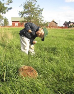 Aamupäivällä pyrimme tekemään kasvien kuvausretken, mutta koska tuuli sen verran ettei kasvien kuvaus onnistunut, teimmekin jonkinlaisen epämääräisen sieni- ja kiviretken. Löysimme Juhan vinkistä jalkapallokentältä pallon kokoisen jättikuukusen, ukonsieniä, ja nurminahikkaita. Aika pian sieniretkemme muuttui kuitenkin jälleen kiviretkeksi. Utö on kiviparatiisi. Saaresta löytyy raidallisia, viirullisia, täplikkäitä, pyöreitä ja soikeita kiviä. Tällaiselle geologiaa tuntemattomalle hämmästyttäviä kaunokaisia. Hautausmaalla on laitettu haudoille pyöreitä ja soikeita kiviä. Ne sopivat hyvin tuulisille haudoille.