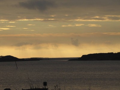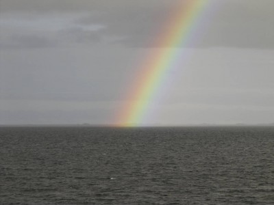 Eivorissa paloivat valot jo pari tuntia ennen sen lähtöä. Kun laiva lähti, satoi hetken aikaa lähes kaatamalla. Säät vaihtelevat nopeasti. Hetken päästä oli taas aurinkoista, ja hieno sateenkaaren puolikas koristi läntistä taivaanrantaa. Se päätyi suoraan harmaaseen mereen. Pojat ryntäsivät paljain jaloin ihmettelemään sitä. Eivät päässeet kuitenkaan aarteen perään.