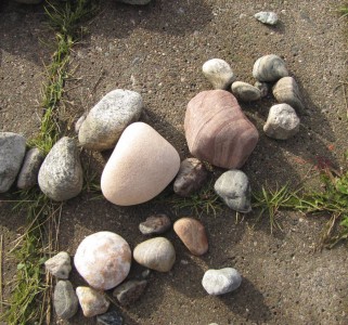 Meidän retkemme suuntautui eteläkärkeen, ja taskun pohjalle solahti muutama hieno kivi lähempää tarkastelua varten. Sama juttu aina – taskunpohjat ovat taas rikki. Olemme koonneet asuntomme pihalle näitä aarteita, ja myös muuta saarista löytynyttä aarteistoa.