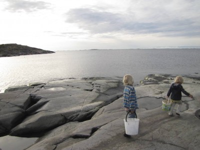 Iltapäivällä savustimme kaloja. Kävin poikien kanssa viemässä lokkien ruuaksi niemen kärkeen kalan perkeet. Silloin jysähti. Neljävuotias keksi yhtäkkiä harpata vesilätäkön yli laakeilla kivillä. Ehdimme huutaa älä hyppää, mutta poika oli jo ilmassa, jalat osuivat liukkaaseen märkään ja poika kupsahti takaraivolleen. Huh.