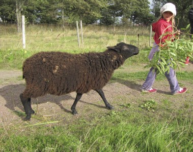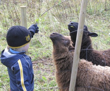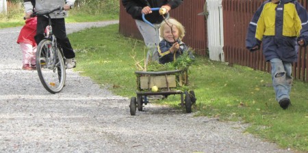 Iltapäivällä kolmen aikaan lampaita oli tarkoitus siirtää toiseen aitaukseen kylän toiselle puolelle. Nähtiin sellainen ihme, että Utössäkin kylän raitilla oli ruuhkaa, varmaan 15 lasta ja melkein kymmenkunta aikuistakin pyöri paikalla. Vain yhdellä oli homma hanskassa. Lapset yrittivät houkutella lampaita leipäpusseilla ja erinäisillä lehdillä peräänsä. Välissä pienemmät kaahasivat edestakaisin pyörillään. Isommat kehittivät vetokärryistä niin sanotun Kallemobiilin. Kalle istui kärryissä, jotka kerättiin täyteen lampaille maistuvaa heinää. Lisäksi mobiiliin liitettiin erinäisiä ulokkeita, joissa oli omenoita houkuttamassa lampaita. Mobiili toimikin melko hyvin ainakin jonkin matkaa. Lopulta lampaat kuitenkin kääntyivät ympäri. Ne ilmeisesti katsoivat parhaaksi pysytellä tutuilla laitumilla ja siihen päädyttiin. Meitä sivustaseuraajia nauratti niin, että ei meinannut tulla kuvaamisestakaan mitään.