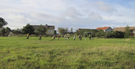 Koululaiset pelasivat aamupäivällä pesistä ja fudista. Homma näytti hauskalta ja onnistui hämmästyttävän hyvin siihen nähden, että pelaajat olivat monenikäisiä ja -kokoisia.