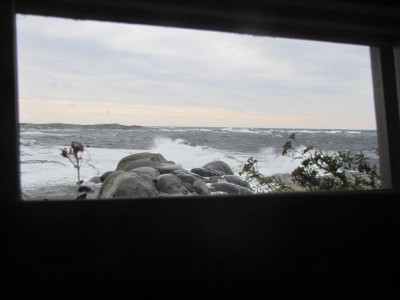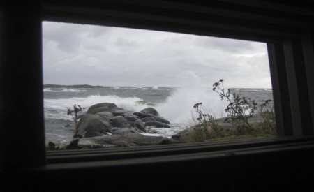 Aamupäivällä veneitä siirreltiin suojaan ja kiinnityksiä korjailtiin. Erilaisia huminoita, pihinöitä, puhinoita ja ujelluksia kuuluu sisällä ja ulkona. Radiomastot vonkuvat.