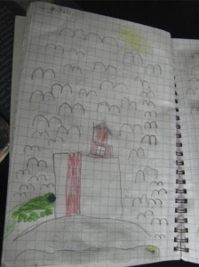 Välillä kävimme koululaisten kanssa korjaamassa lammasaitausta, kun lampaat olivat kaataneet aidan. Kalle oli joukon jatkona, ja pääsi vielä luokkaankin hetkeksi seuraamaan oppituntia. Iltapäivällä ihmettelimme lyijykynän mittaista rantakäärmettä, joka uhosi tienposkessa, kohotti päätään luikerrellessaan ja meni uhkaavasti kippuralle.