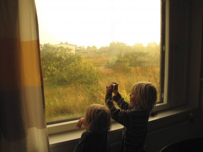 Lauantaina tuhrasin koko päivän aamuyhdeksästä keskiyöhön Pasilassa työhuoneella ja niinpä pakkaaminen jäi kumminkin viimetinkaan. Edessä on kuuden viikon reissu Utön saareen. Hyppäsimme autoon kahdeltatoista sunnuntaina ja lähdimme liikkeelle. Hetken kuluttua palasimme takaisin, kun isoimmalta unohtui jalusta ja keskimmäiseltä koululaukku. Puolessa matkassa muistettiin vielä lisää unohtuneita asioita kuten Juhan piilokoju, mutta enää ei käännytty kumminkaan.