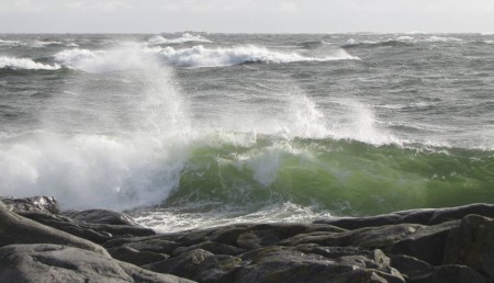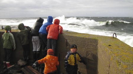 Pääsimme aamupäivällä koululaisten kanssa Västra Uddenin sotilasalueelle katsomaan aaltoja. Kaikki bunkkerin reunalla seisseet kastuivat läpimäriksi, mutta se ei tahtia haitannut. Lounaistuuli puhalsi 20 metriä sekunnissa, puuskissa 25.