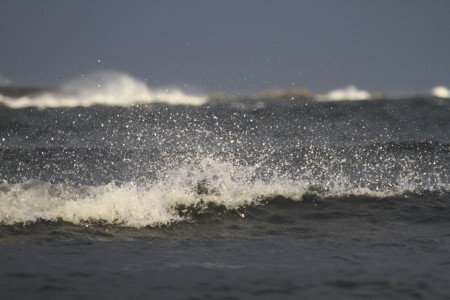 Tein iltapäivällä myrskyretken eteläkärkeen. Meri vaahtosi ja kuohui. Siellä täällä kohosi vesipatsaita kuin ajastetuista suihkulähteistä. Muutamat horisontissa olivat valtavia. Yritin taltioida kuviin hienoa vihreää sävyä, joita aalloissa toisinaan näkee. Aaltojen kuvaaminen on hauskaa hommaa, mutta yllättävän hankalaa. Monimetrisetkin aallot tuntuvat kuvissa kutistuvan pieniksi. Jos menee liian lähelle kastuu varmasti, ja jos menee vielä lähemmäksi luisuu aaltojen mukana mereen. Päivän kuvauksissa linssi tuli moneen otteeseen suolavedellä kuorrutettua. Pyyhin ja nuolin sitä puhtaaksi. Olen luullut, että jälkimmäinen on kaikkien kuvaajien käyttämä kikka. No, eipä taida olla. Kikka onkin ilmeisesti omani, ja hämmästytti ympärillä olevia. Juha kertoi, että joskus hiekkarannoilla tai aavikoilla lintuharrastajat saattavat nuolaista kiikarin linssejä ennen kuin putsaavat ne asianmukaisella kankaalla. Näin hiekansirut eivät naarmuta optiikkaa.