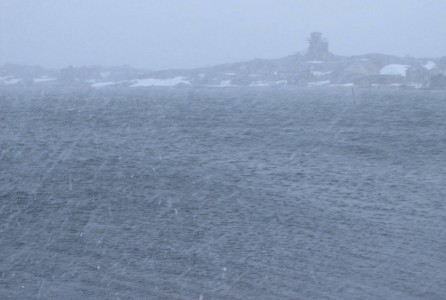 Lähtöpäivänä Eivorilla oli ennakkoäänestys. Saarelaiset kävivät antamassa äänensä, kun laivaa lastattiin. Paluumatkalla urakoimme tytön kanssa viimeisiä läksyjä. Meri oli peilityyni. Pienellä luodolla seisoskelevat merimetsot heijastuivat veden pintaan kuin musta jättiläiskukkanen. Kamera oli kuitenkin repussa.
