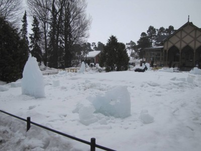 Kävin tänään Korkeasaaressa tekemässä haastattelua siitä, millaisia merkkejä dinosauruksista edelleen näkyy linnuissa. Paleontologi Mikko Haaramo taitaa tietää dinosauruksista kaiken ja vielä vähän enemmänkin – ja hänen innostuksensa välittyi ohjelmaan. Korkeasaaren jääveistoksista oli jäljellä enää jäisiä hienon värisiä möykkyjä.