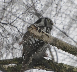 Aamupäiväretkellä kävimme katselemassa metsähiirtä Larun rannassa. Muutaman kerran se piipahti lumikäytävän suulla, mutta oli nyt selvästi aremmalla tuulella kuin ennen. Olisikohan syynä kaverin karvamytty kolon lähellä. Joku peto oli saalistanut sukulaisen, ja saanut tämän siimahännän varuilleen.