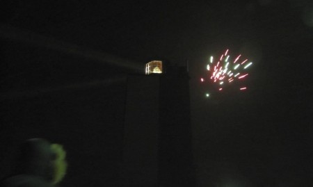 Keskiyöllä selviää, ettei majakan edustalla olevaan koriin voi sytyttää tulta. Kymmenen minuuttia ennen vuodenvaihdetta iskee hurja lumimyrsky. Väkeä kuitenkin kerääntyy armottomassa kelissä majakalle vastaanottamaan uutta vuotta. Hieno keli! Pienin on eri mieltä, eivätkä raketitkaan taida miellyttää. Poika haluaa kotiin heti keskiyön jälkeen. Kaikki lapset kuukahtavat sänkyihin välittömästi, kun pääsemme sisään.