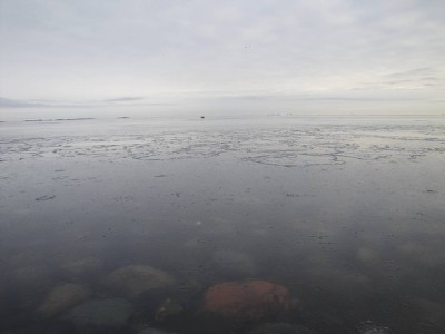 Meri on tänään tyyni ja etelälahti alkaa taas jäätyä.