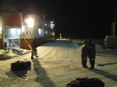 Tytöllä on tuttuja laivassa. Aspön jälkeen alkaa olla hämärää ja Nötön laiturissa on jo pimeää. Jäät hidastavat matkantekoa, laiva on yli tunnin myöhässä. Hotellin johtajan tarjosi näyttelyä kevääksi tai alkukesäksi. Täytynee alkaa virittää.