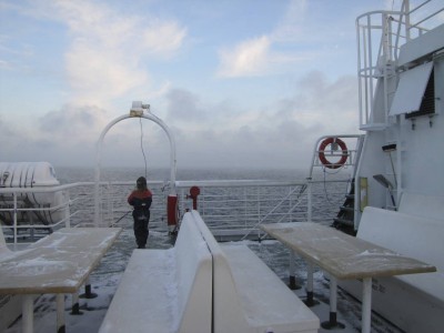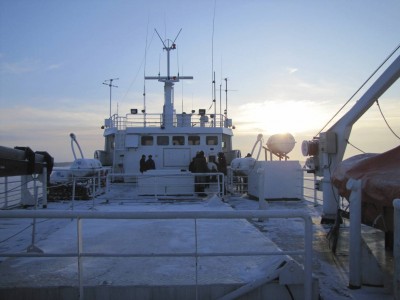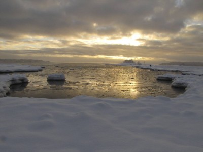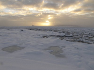 Kiireen tuntu hellittää vasta laivalla. Laivamatka on upea. Merisumua, jäitä ja avovettä. Ylitämme jäärajan pariin kertaan. Jo kaukaa näkyy mistä kohden meri on avoin, kun se höyryää. Laivalla on tuttuja saarelaisia ja retkeilijöitä. Tyttö on innoissaan, ei malta edes katsella videoita laivan alakerrassa, vaan keikkuu kannella tuijotellen, miten Eivor murtaa jäätä. On pimeää, kun saavumme Utön saarelle, joten saaren tutkiminen jää huomiseen. Asetumme taloksi ja koristelemme joulukuusen.