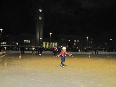 Kävimme katsomassa Stokkan jouluikkunaa, ja kokeilemassa kirpparilta löytyneitä luistimia Rautatieaseman luistinkentällä. Jaksoimme pyllähdellä kokonaisen tunnin! Puolet luisteluilosta Rautatieasemalla on kyllä siinä, että paikalla on – ainakin niinä muutamina kertoina, kun olemme siellä käyneet – ollut turisteja, joiden ensikosketusta jäähän on hauska seurata. Ja sitten yleensä luistelemassa on myös muutama huipputaitava piruetin tekijä, joiden menoa voi ihailla.