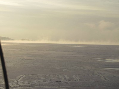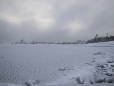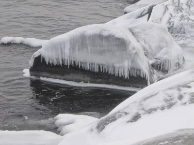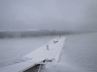 Linturetken saldo on varsin vaatimaton. Lumen määrä sen sijaan on hämmästyttävä. Satamalahti on jo puoleen väliin jäässä. Vastaantulevat saarelaisetkin ihmettelevät sitä. Pakkasta on huomattavasti vähemmän kuin mantereella, kun meri lämmittää. Eteläkärjen edustan luoto hohtaa valkoisena harmaan meren keskellä.