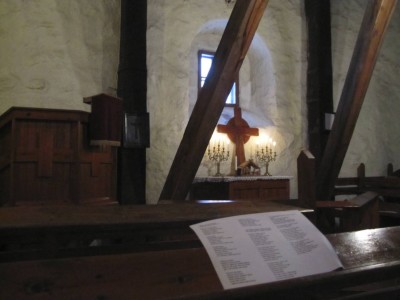 Joulupäivän aamuna majakassa vietetään saarelaisten voimin perinteinen kirkkohetki. Tuuli on kova, se kuuluu majakan kiviseinien sisäänkin. Ilma on sen verran kylmä, että hengitys höyryää, mutta puupenkeillä tarkenee kyllä istua. Kynttilät palavat ja paikalle on kerääntynyt paljon ihmisiä, monia tuttuja. Olen ilmeisesti tulossa vanhaksi, kun Maa on niin kaunis laulu liikuttaa. Kuulemma sitä on laulettu perinteisesti Utön majakkakirkossa. On jännä ajatella, miten monet ihmiset ovat vuosikymmenien saatossa istuneet majakkakirkon kiviseinien suojissa, ja miten moniin tilaisuuksiin ja elämäntilanteisiin täällä on hiljennytty.