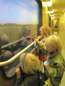 Syyslomaviikkoon sisältyi muutakin jännitystä mm. käynti Kuhmon terveyskeskuksessa pienimmän retkeläisen leuan paikkauksessa (tuli hyvin kuntoon). Ehdimme pyörähtää päiväreissulla Katinkullan kylpylässä, ja Kuhmon Juminkeossa katsomassa esillä olevaa taidenäyttelyä. Matkat taitoimme yöjunalla, ja se taisi olla pienimmän retkeläisen mielestä reissun kohokohta. Ainakin nykyään nukkumaanmenoaikaan poika esittää aina pontevasti, että haluaa nukkua mieluummin yöjunassa.
