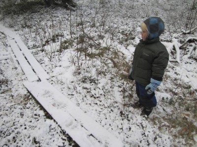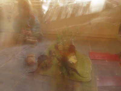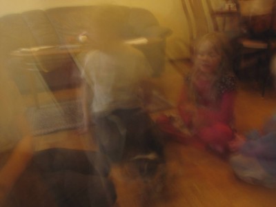 Juha osallistui itsenäisyyspäivän linturalliin. Me taas kävimme naapurilasten kanssa pulkkamäessä ja leikkimässä rannan bunkkereilla. Keli oli niin kostea, että sisään päästyämme sain kamerallani aikaiseksi vain ohessa näkyviä taidekuvia, joista ylemmässä pitäisi näkyä naapureiden uusi 3 kk ikäinen chihuahuakoira, jota kävimme ihmettelemässä, ja alemmassa Kalle dinosaurusleikissä lasstenhuoneen lattialla.
