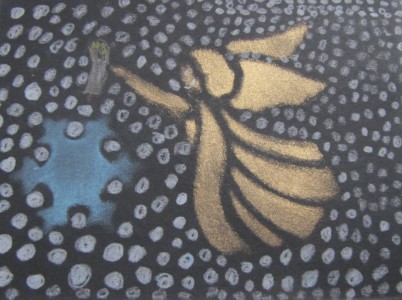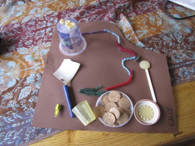Kolmevuotias toi joitain päiviä sitten askarteluteoksensa kotiin. Teoksessa on käytetty materiaaleja todella laajasti, ja hienohan se on, mutta äidillä on vähän sijoitteluvaikeuksia: Pöydälle vai seinälle?