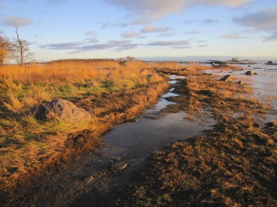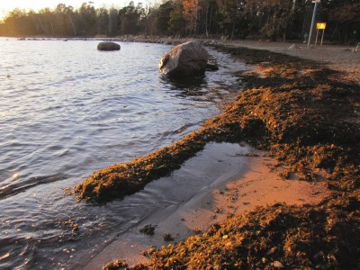 Kävimme neljän aikaan viisivuotiaan kanssa kuvausreissulla iltapäivävalossa. Päämme yli lensi matalalla merikotka. Kahlailimme lehdissä, tutkimme uimarannalla rakkolevävallin antimia, ja poika kuvasi oranssia köydenpätkää tarmokkaasti. Ohessa mielestäni paras otos.