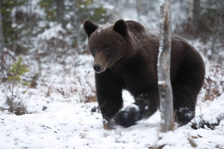 En ole koskaan aiemmin nähnyt karhua Suomen luonnossa. Nyt pääsin piilokojusta näkemään emon kolmen poikasensa kanssa ja muutaman muun karhun, ilmeisesti uroksia. Karhujen ilmaantumista on jännittävää odottaa ja on melkein epätodellista kun karhu lopulta kömpii metsästä esiin. On hauska seurailla maiseman valoja ja miettiä karhujen kuvaamista, ja sekin on hauskaa, kun valo vähenee ja voi keskittyä kuvaamisen sijasta vain katselemaan ääriviivoja, vähitellen pimentyvää sinistä hämärää ja kuuntelemaan miltä karhun tassujen ääni kuulostaa nevalla, tai miltä karhun ruokailu kuulostaa. Seurailimme piilokojusta myös korppeja, variksia, harakoita, närhiä, kuukkeleita.
