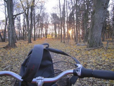 Olen yrittänyt pyöräillä töihin viime viikot. Päivät ovat vaihdelleet aika lailla. Maanantaiaamu oli huikaisevan kaunis, loppuviikko sateisempi.