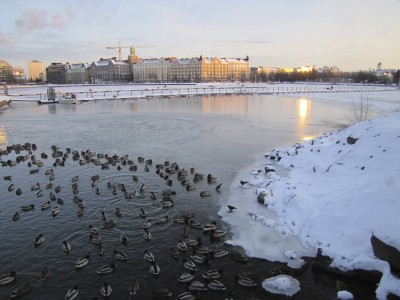 Täällä on taas pitkästä aikaa vietetty kotipäivää, kun joku kuume/vatsatauti vaivaa muuta joukkoa. Kävin iltapäivällä haastattelemassa kaupunkiekologian professori Jari Niemelää Helsingin Töölönlahdella. Juttelimme kaupunkikaneista ja huuhkajista, siilien retkistä Linnanmäelle, ekologisista käytävistä ja joutomaiden merkityksestä. Haastattelun jälkeen pyörähdin äänittelemään Tokoinrannan sorsia. Lopulta hyppäsin bussiin jäätyneenä puolitönköksi, vaikka kuinka oli pitkät kalsarit ja villapaidat päällä.
