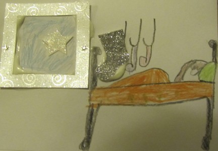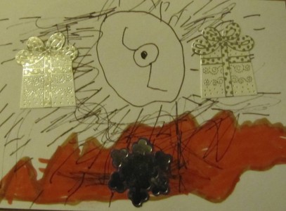 Joulun odotus on vallannut talon (Juhaa lukuun ottamatta). Lapset ovat innostuneet tekemään joulukortteja. Sain luvan laittaa kuvia niistä tähän.