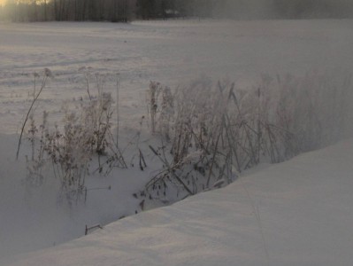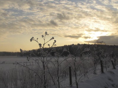 Lykkäsimme lapset isovanhemmille, ja lähdimme Juhan kanssa parin tunnin talviretkelle Abramsbyhyn. Lintuja oli vähänlaisesti liikkeellä. Näimme joitakin käpytikkoja. Yksi tikoista puuhaili pajallaan sähköpylväässä kuusenkävyn kimpussa. Eräällä piharuokinnalla kävi sini-, tali-, kuusi-, töyhtö- ja hömötiaisia. Maatilan navetan ovelle kuului hieno äänimaisema, kun sisällä varpuset silkuttivat, mustarastas luritteli, ja lehmät hönkäilivät. Alkumatkasta tien yli pomppi kolme metsäkaurista