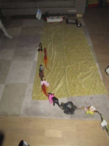 Tytön synttärit keskiviikkona sujuivat hienosti. Ekaluokkalaiset tytöt ovat suloisia! Menokin oli melko rauhallista, ainakin hallittavaa. Tytöt innostuivat pantomiimista, nukketeatterista, gorillan nenän laittamisesta ja aarteen etsinnästä. Illalla olo oli niin sanotusti väsynyt mutta onnellinen. Sen sijaan se on nyt viimeistään uskottava, että nykylapset eivät syö kakkuja. Kakkukeisarista tilaamani 16- hengen prinsessakakusta jäi melkein puolet jäljelle.