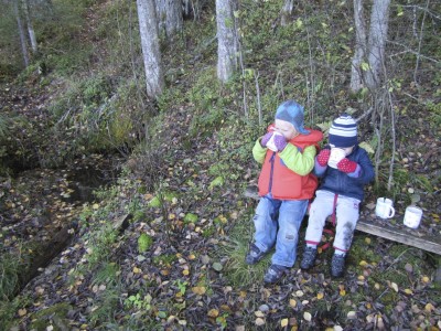 Ennen veneen kääntämistä kävimme soutaen keisarinlähteellä maistelemassa lähteen vettä. Lähde on saanut nimensä keisari Aleksanteri I:n mukaan. Keisari on piipahtanut lähteellä runsas 200 vuotta sitten liikkuessaan tarkastusmatkalla Mäntyharjulla. Vähänpä olisi keisari voinut aavistaa, että parisataa vuotta myöhemmin lähteen reunalla kaikuu kahden pojan railakas Pokemon- laulu, joka loppuu pienemmän fanin voimaperäiseen huutoon: ”Picachu, tee tandevoor!” (mitä se sitten tarkoittaneekaan!)