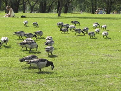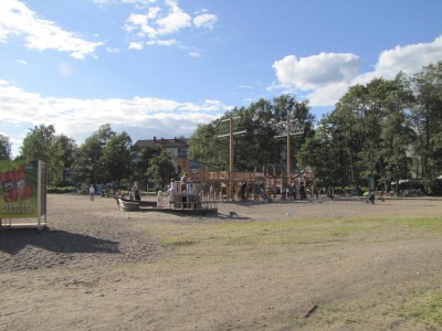 Tältä näyttää kesä kaupungissa: pyöräilimme viime keskiviikkona tytön kanssa tapaamaan kavereita Kasinonrantaan. Ihmettelin kaikkea tapahtumaa kentällä: liikuntakeskuksen puistojumppa oli meneillään ja toisella puolella taijitunti, joku porukka lennätti leijoja. Sekaan mahtuivat myös auringon ottajat, eväsretkeläiset ja laiduntavat valkoposkihanhet. Laivapuiston kiipeilyteline oli täynnä lapsia ja kahvila jätskin syöjiä.