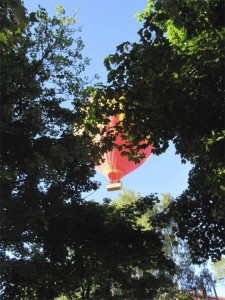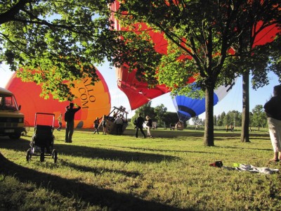 Kaupungissa on kivaa seurata lajeja jotka vaativat jotain tiettyä säätä. Kasinonrannassa oli maanantaina kymmenittäin purjelautailijoita. Homma näyttää hauskalta. Tänään ohi pyöräillessämme oli tyyntä eikä yhtään lautailijaa näkynyt. Illalla osuimme sen sijaan sattumalta katsomaan miten neljä kuumailmapalloa lähti lentoon Ruukinlahden nurmikentältä. Ihmettelimme pallojen kokoa. Kun ensimmäinen alkoi kohota sen varjo peitti auringon ja tummensi puolet puistosta. Kuulimme lennonjärjestäjän kertovan paikalle tulleille matkustajille, että ylimääräiset tavarat kannattaa jättää autoon. Ylhäällä on yhtä lämmintä ja tyyntä ja aurinkoista kuin tässä maan päällä. Muistan kerran Suomenlinnassa kuulleeni selkäni takaa tulisia puhalluksia, jotka kuulostivat ihan lohikäärmeeltä. Muutaman sekunnin verran ihmettelin mitä tapahtuu, ennen kuin kuumailmapallo alkoi kohota rantakasarmin takaa. Pienintä lasta juttu nauratti.