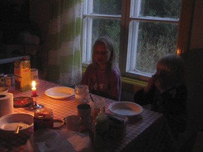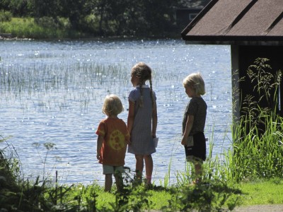 Kumlingen kesän ajattomia aurinkoisia päiviä on vaikea kirjoittaa mihinkään muotoon jälkikäteen. Nuorin iloitsi verkonnostoista ja laskuista soutuveneellä ja on aivan hillittömän kiinnostunut kaloista. Tyttö löysi samanikäisen ystävän saarelta, ja tytöt ehtivät leikkiä puu-ukoilla ”köyhää aikaa”, hoitaa Rauha- toukkaa, leikkiä koulua, rakentaa ehkä saaren historian hienoimman majan ja viettää muutaman yön yökylässä talossamme salaisuuksia kuiskutellen ja tarinoita kertoillen.