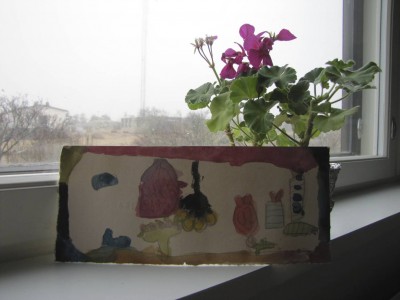 Sain upeat äitienpäivälahjat: tyttö oli kasvattanut koulussa punaisen pelargonian, lapset yhdessä olivat tehneet helminauhan ja sain vielä korvakorutkin. Äitinä olo on kyllä huippukivaa!